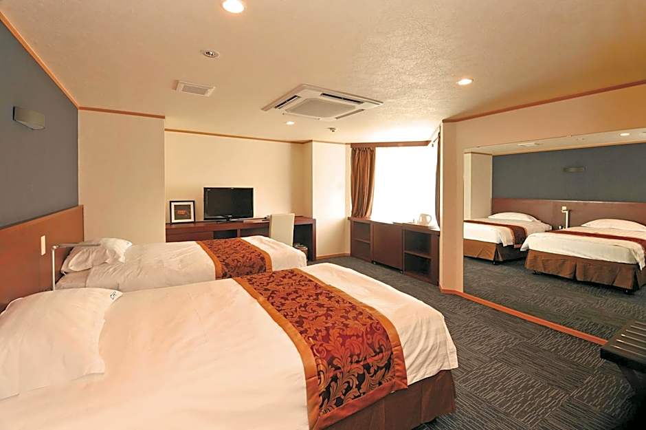 Offering free toiletries, this twin room includes a private bathroom with a bath, a shower and a hairdryer. The air-conditioned twin room offers a flat-screen TV, an electric kettle, yukata, heating as well as city views. The unit offers 2 beds.